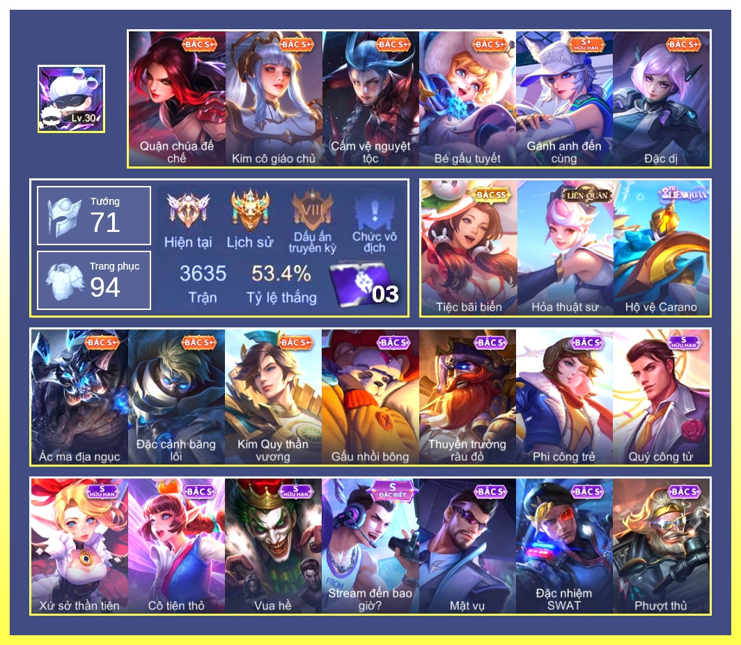 Hình ảnh chi tiết của tài khoản Liên Quân #31544